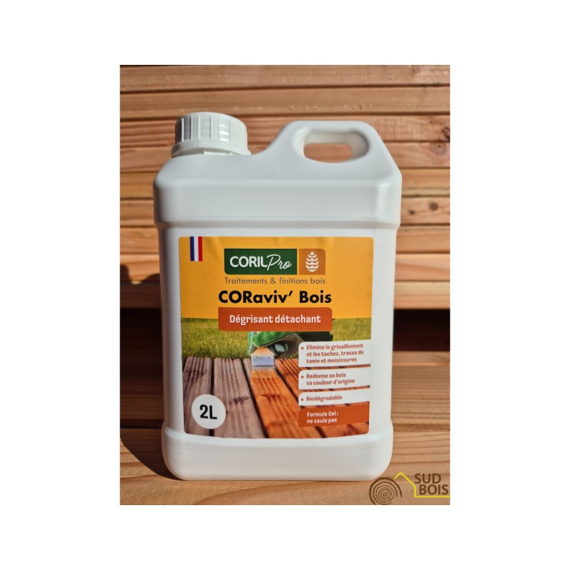 CORaviv' Bois est un dégrisant haute performance destiné à éclaircir tous les types de bois grisaillés sans les décolorer. Il élimine les traces liées aux intempéries, aux moisissures, aux tanins, à la rouille et à la pollution. Il permet de retrouver la couleur d’origine du bois sans taches.