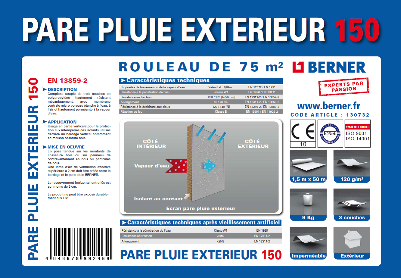 Le multivap 200 est un écran pare pluie pour Maisons et Ossature Bois conforme aux exigences des NF DTU 31.2 et 41.2. Il empêche la pluie, le vent et l’air d’apporter de l’humidité dans l’isolant si celui-ci est posé dans les règles de l’art.