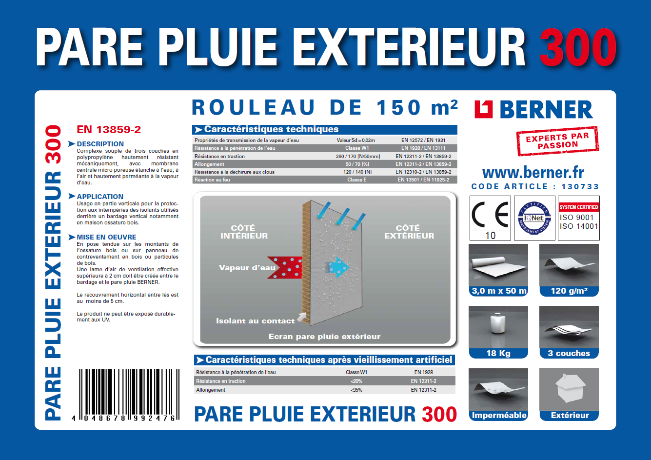 L'écran pare pluie empêche la pluie, le vent et l'air d'apporter de l'humidité dans l'isolant si celui-ci est posé dans les règles de l'art.